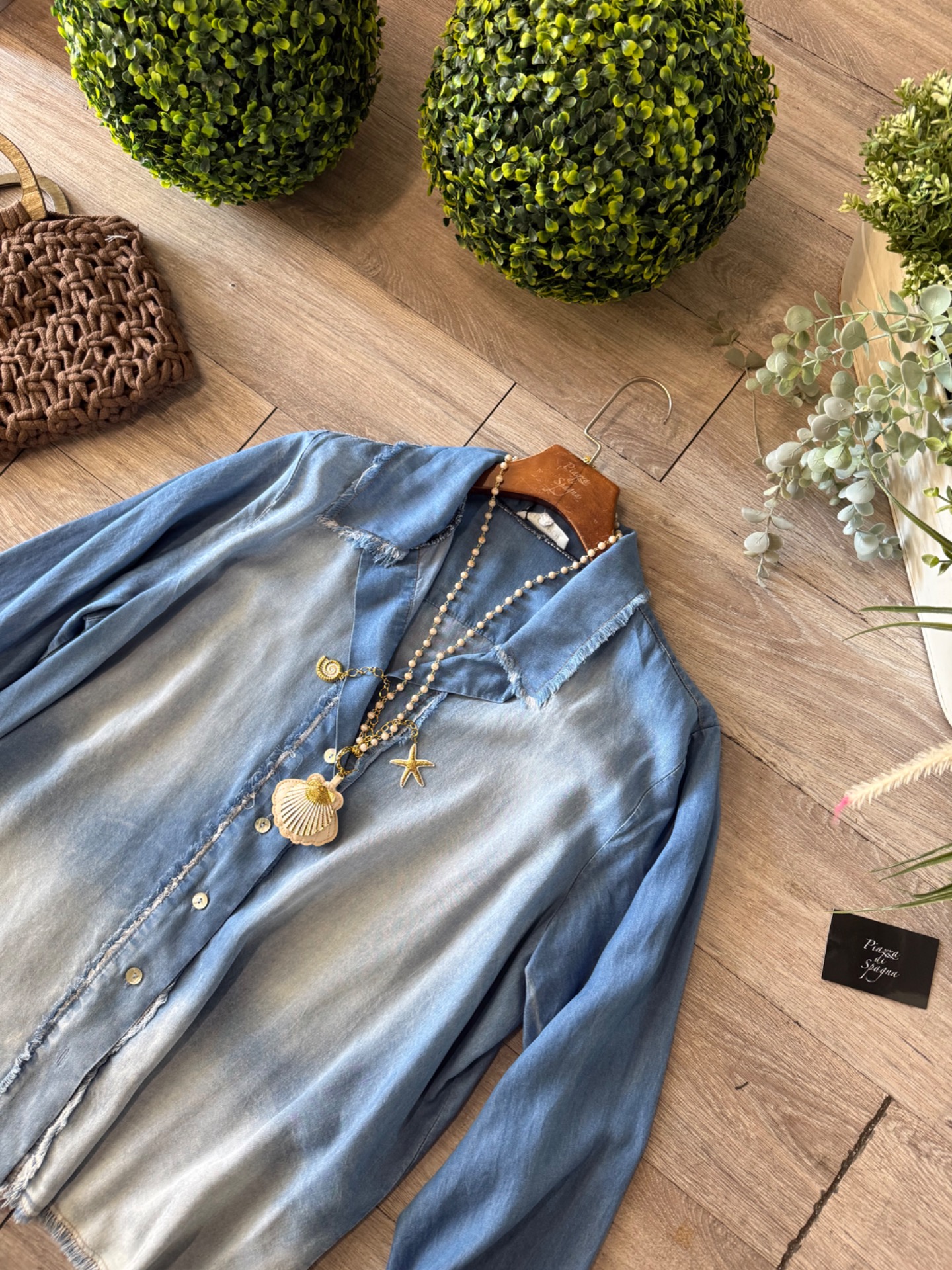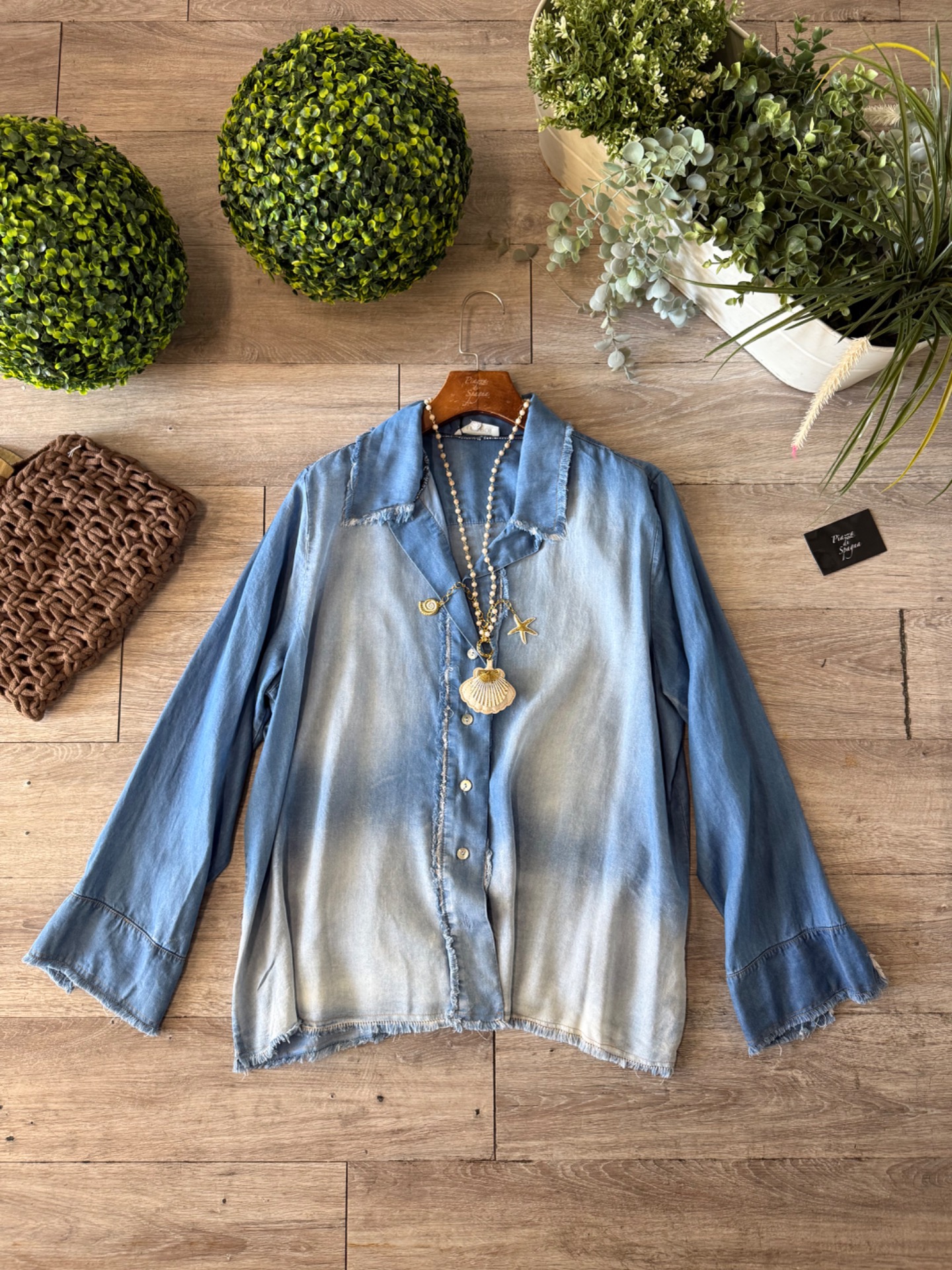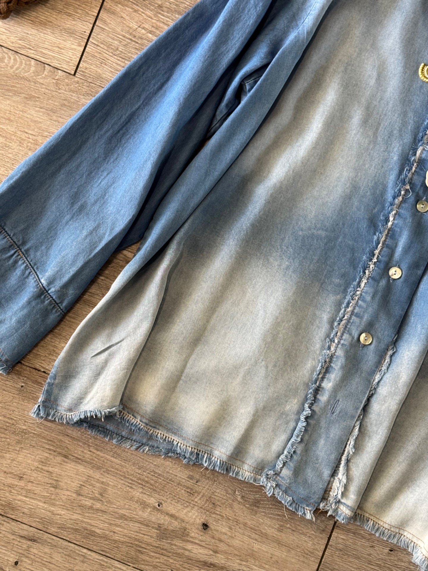 Camicia taglio oversize cok bottoni e colletto, slavatura e sfrangiatura100% made in italy
