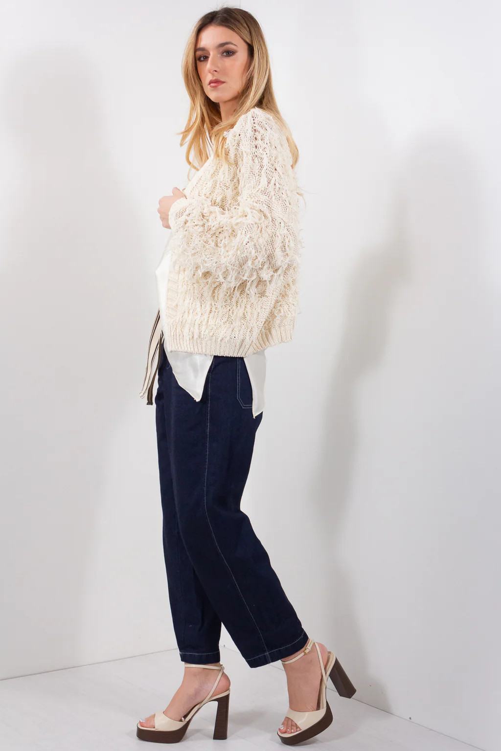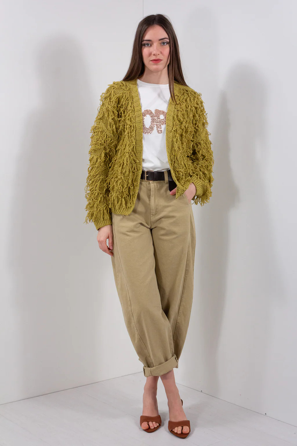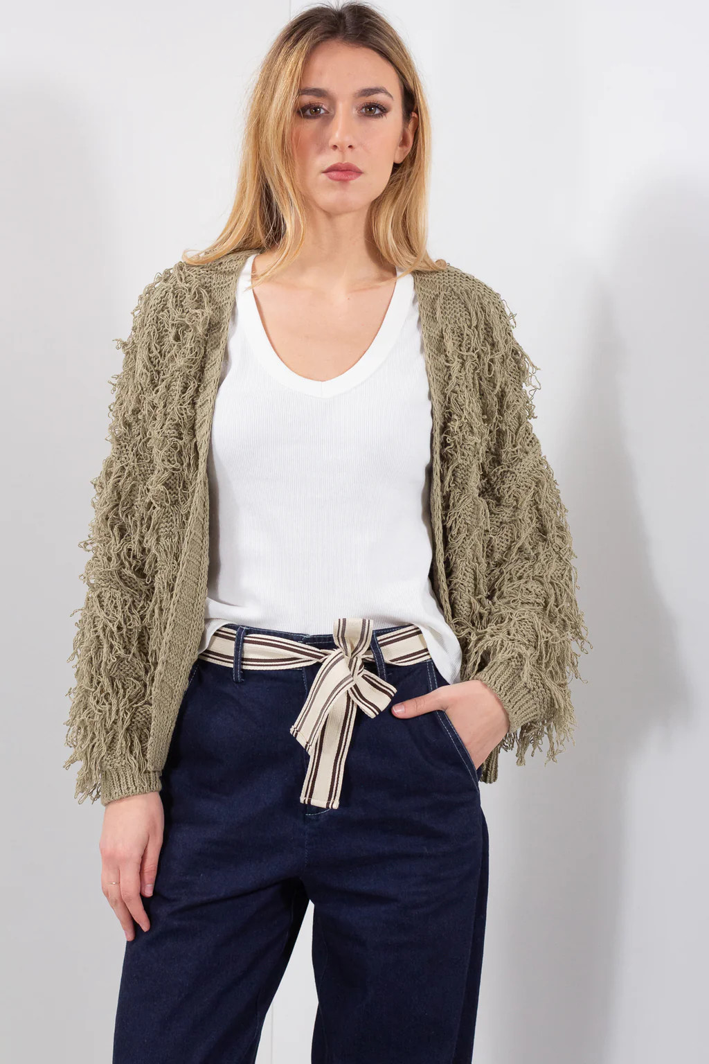 Cardigan senza chiusure con frange