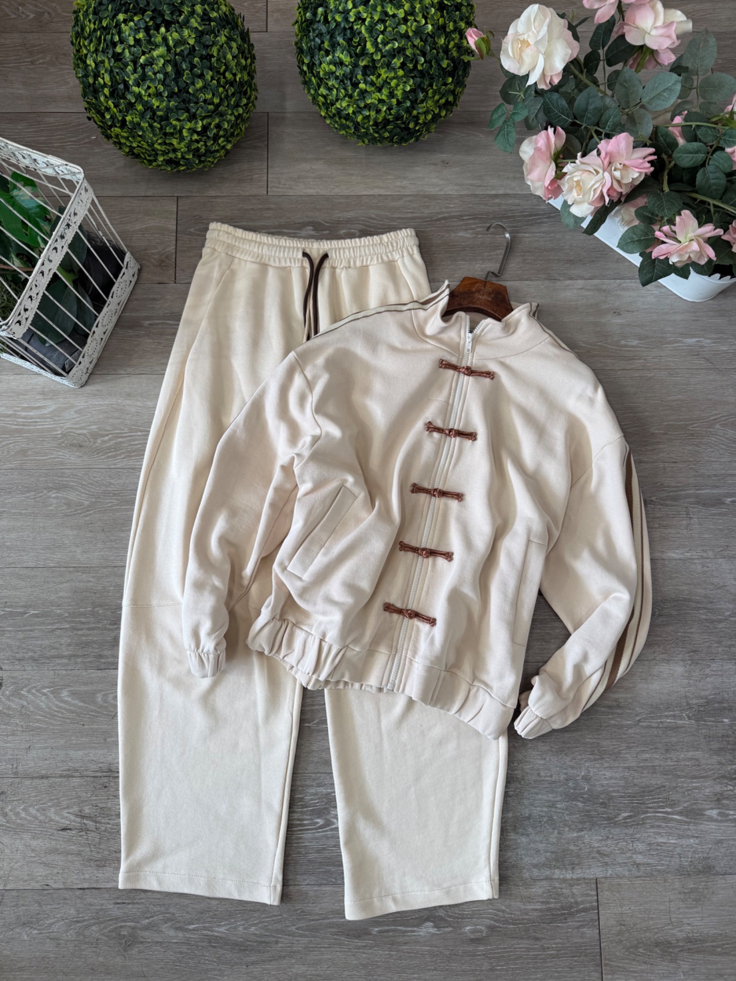 Felpa in cotone oversize con ricami e zip frontale, elasticizzata