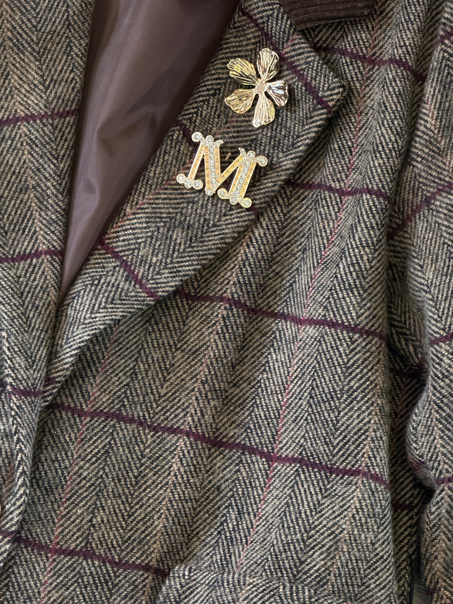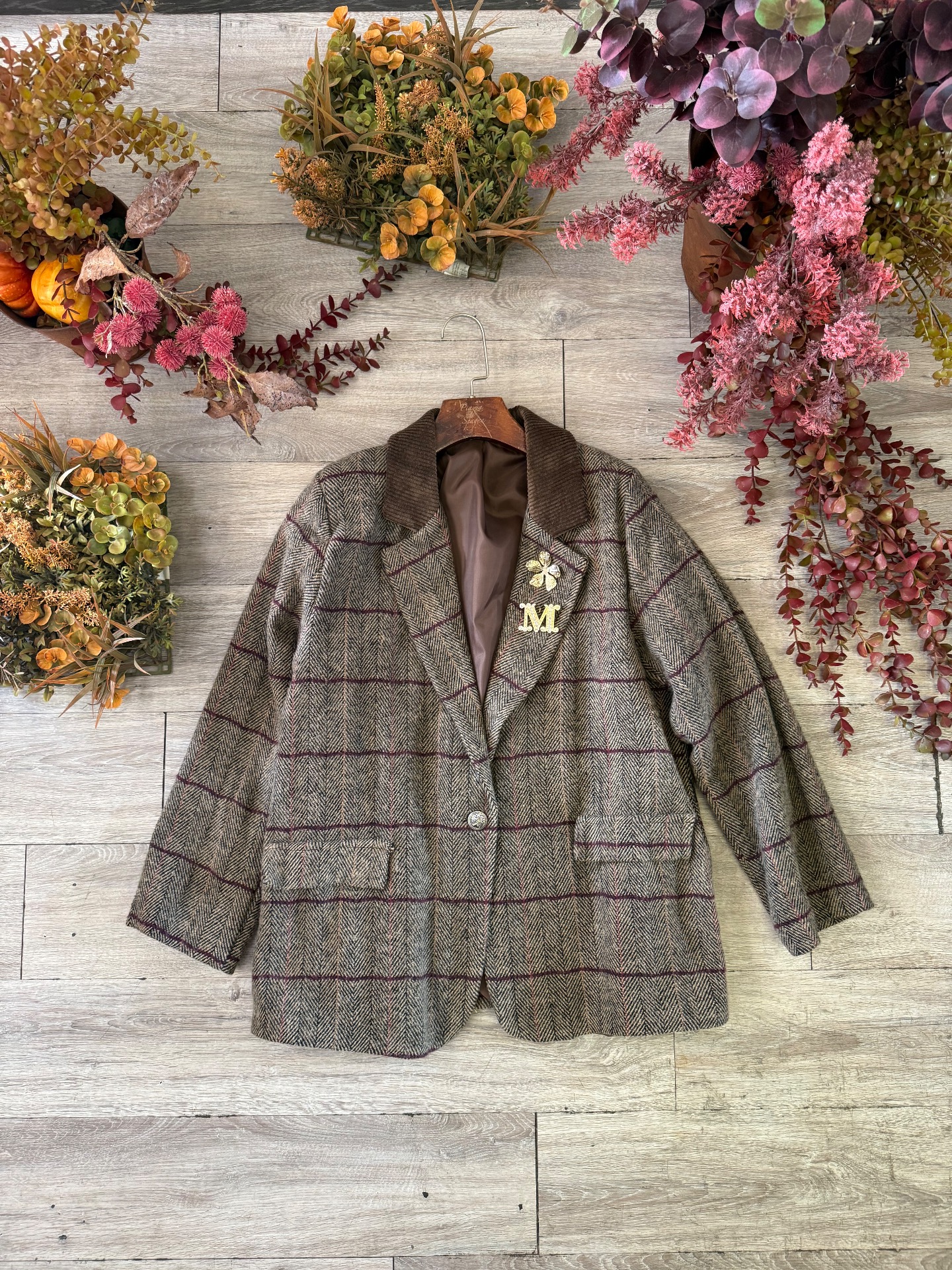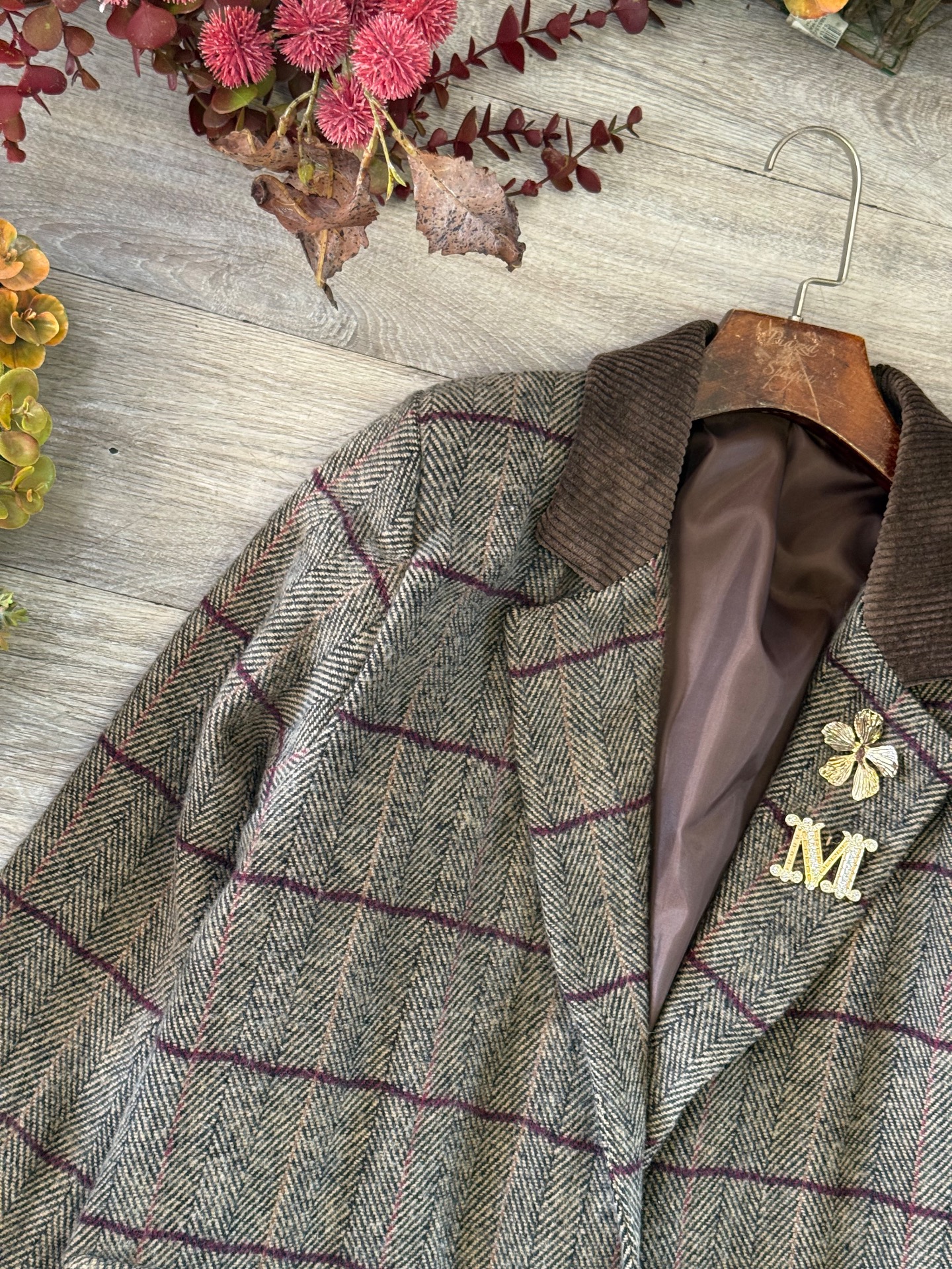 Giacca scozzese foderata con collo in velluto e tasche, taglio oversize
