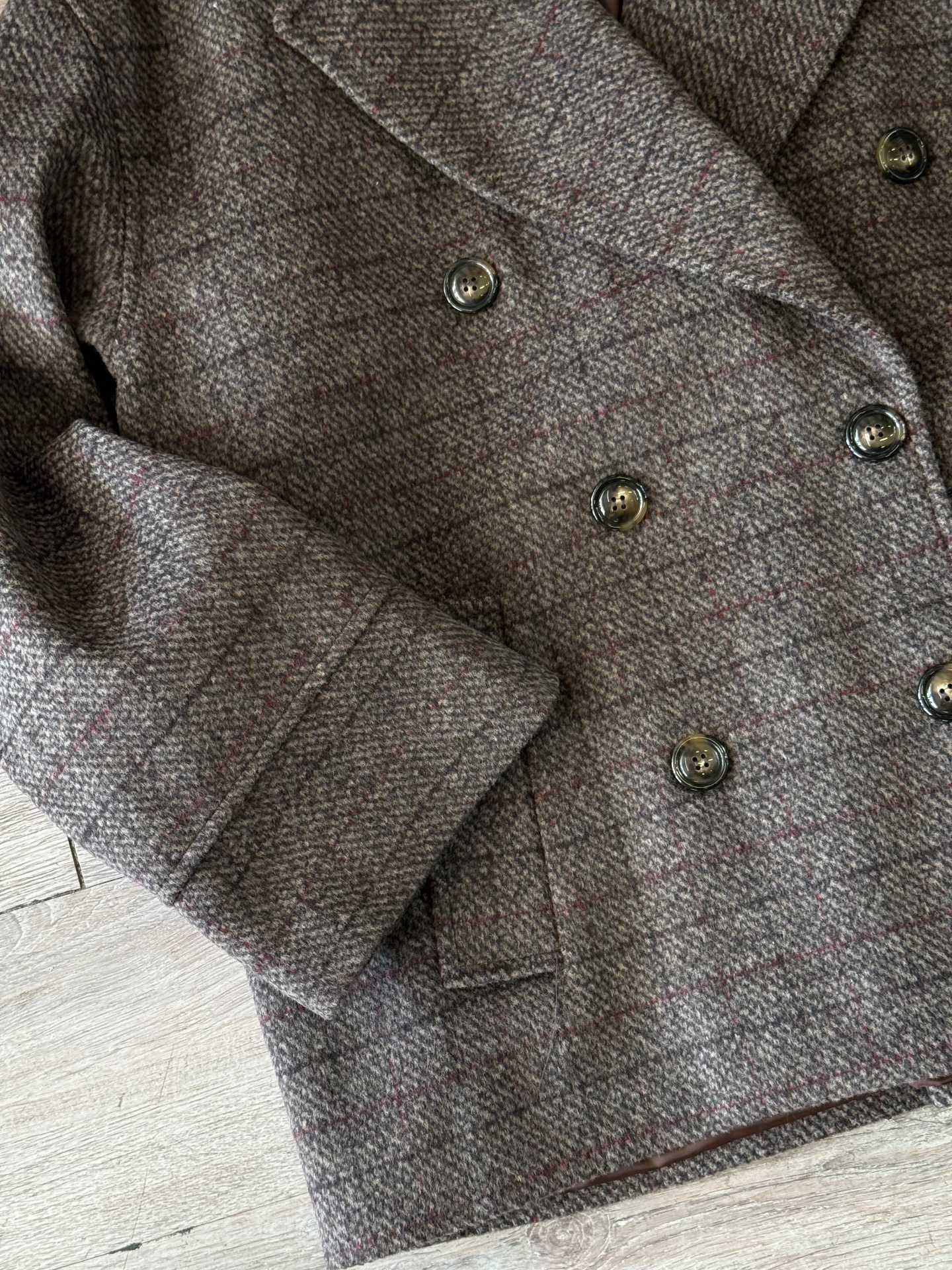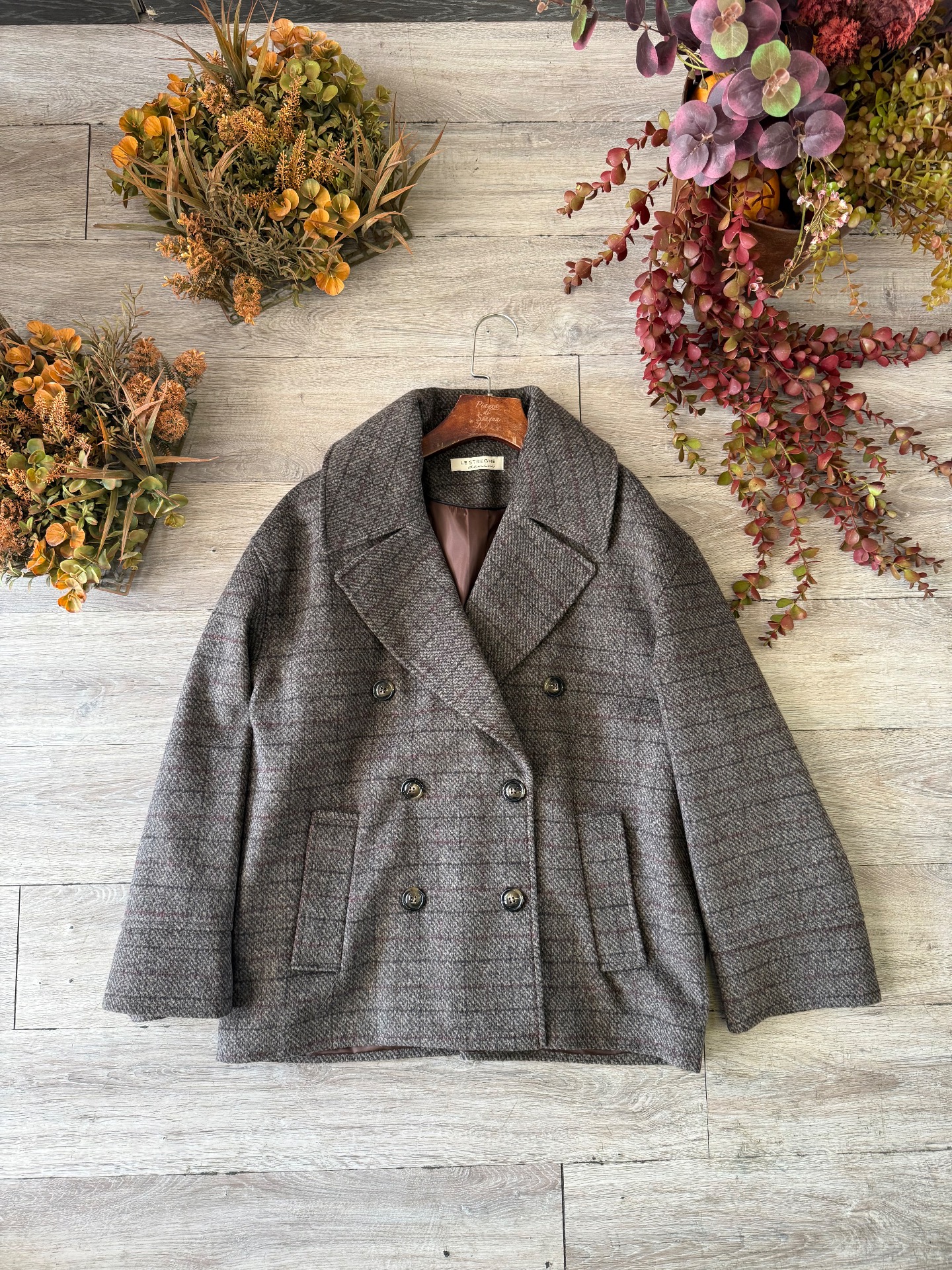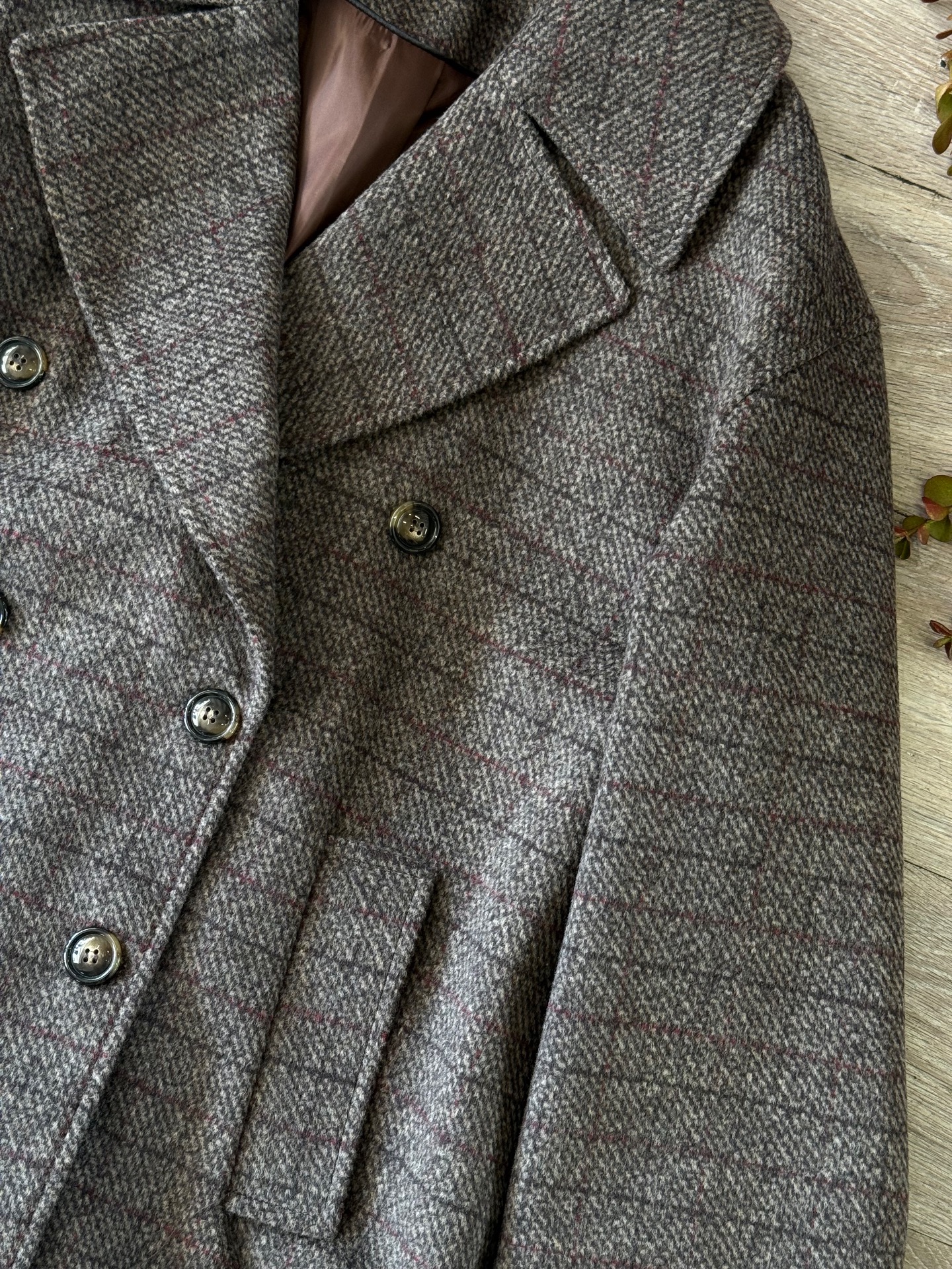 Giaccone doppiopetto in fantasia a quadri, foderato, taglio oversize con spalla scesa 100% made in italy