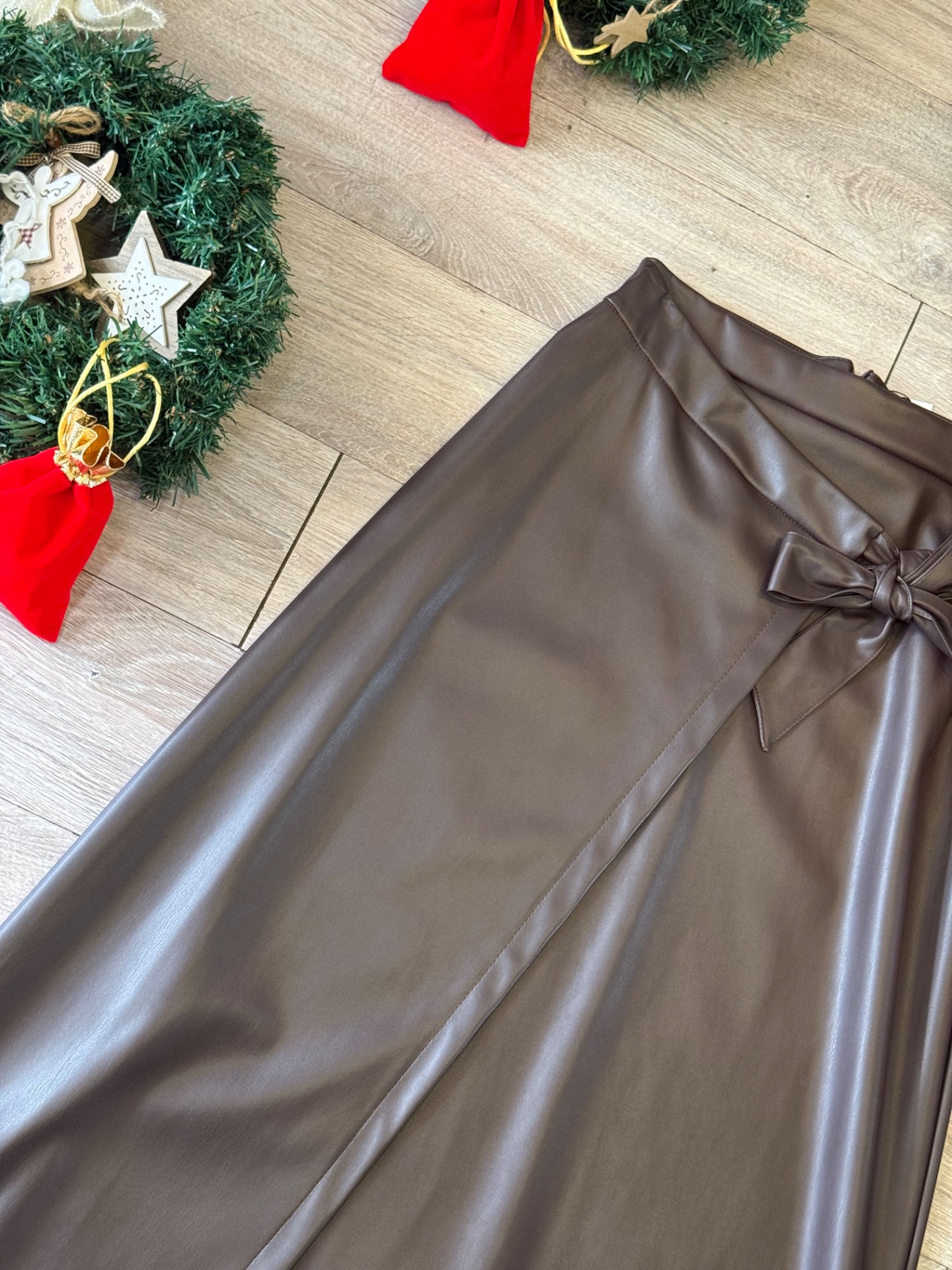 Gonna in ecopelle a portafoglio con fiocco, zip laterale 100% made in italy