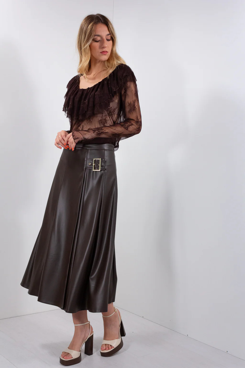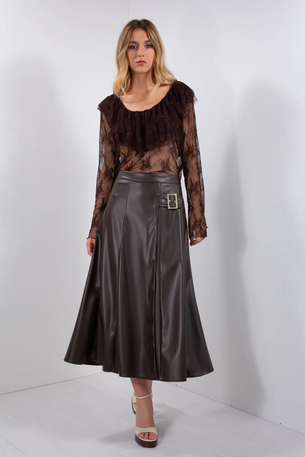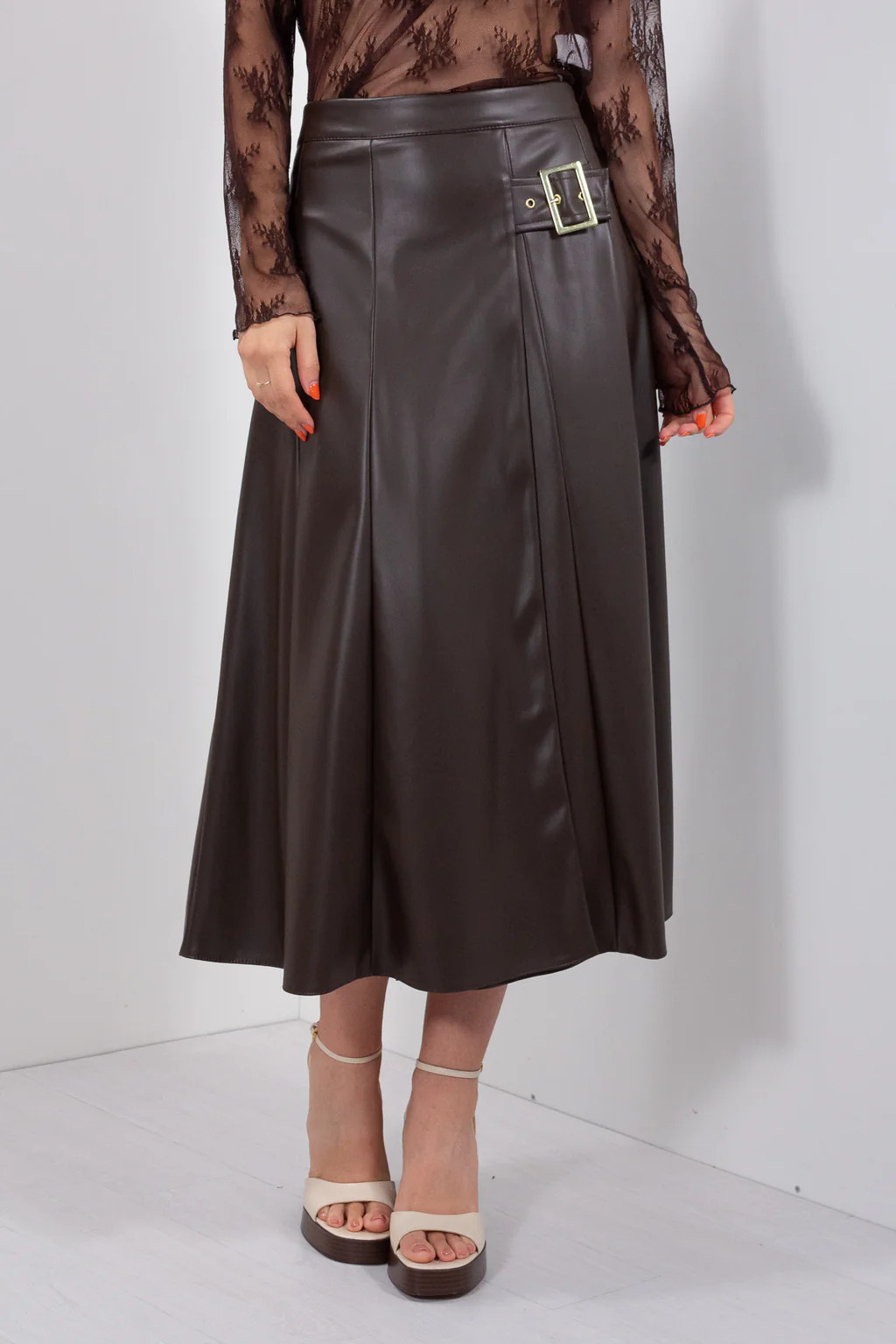 Gonna in ecopelle, portafoglio con fibia, foderata in suede