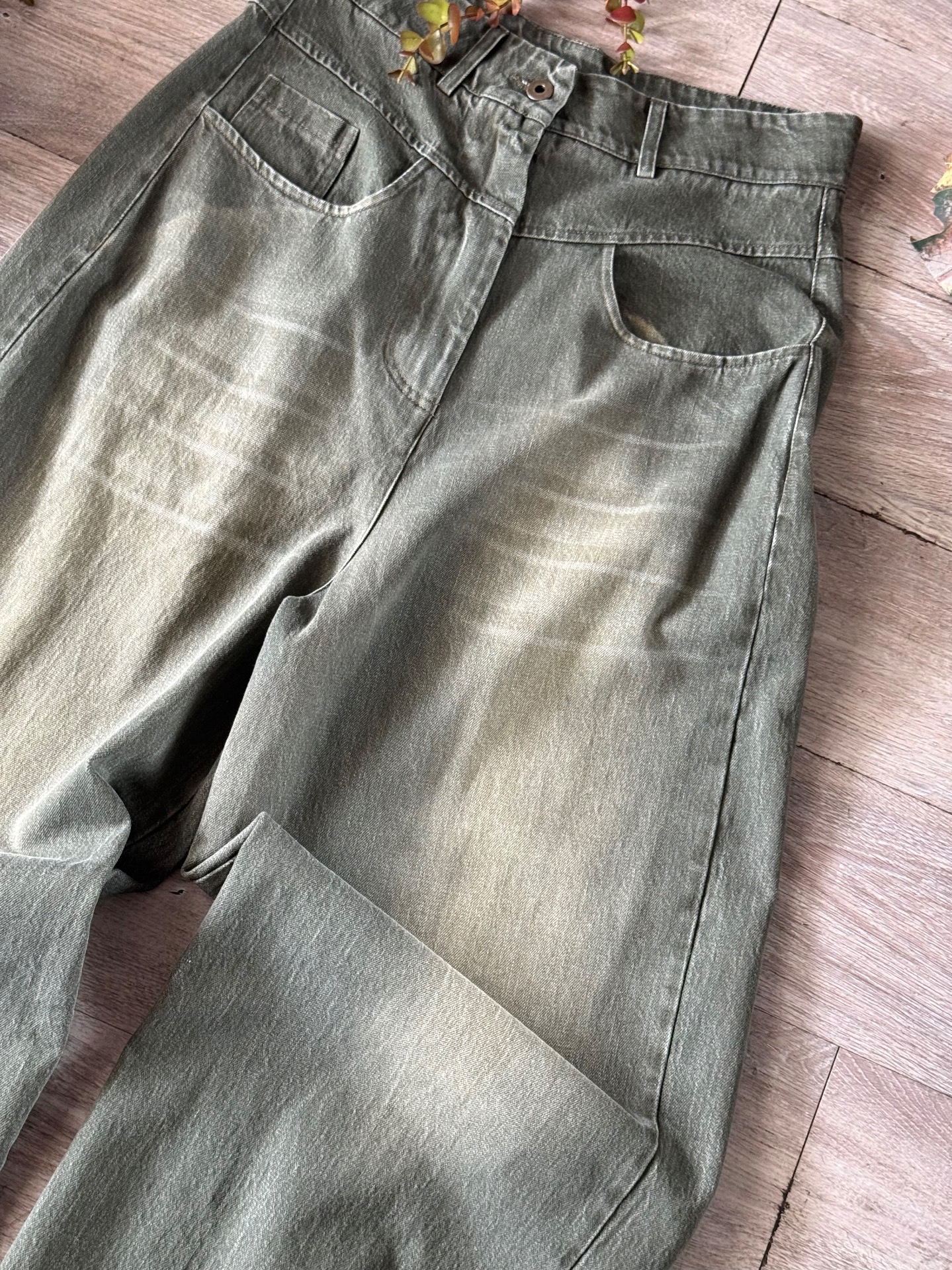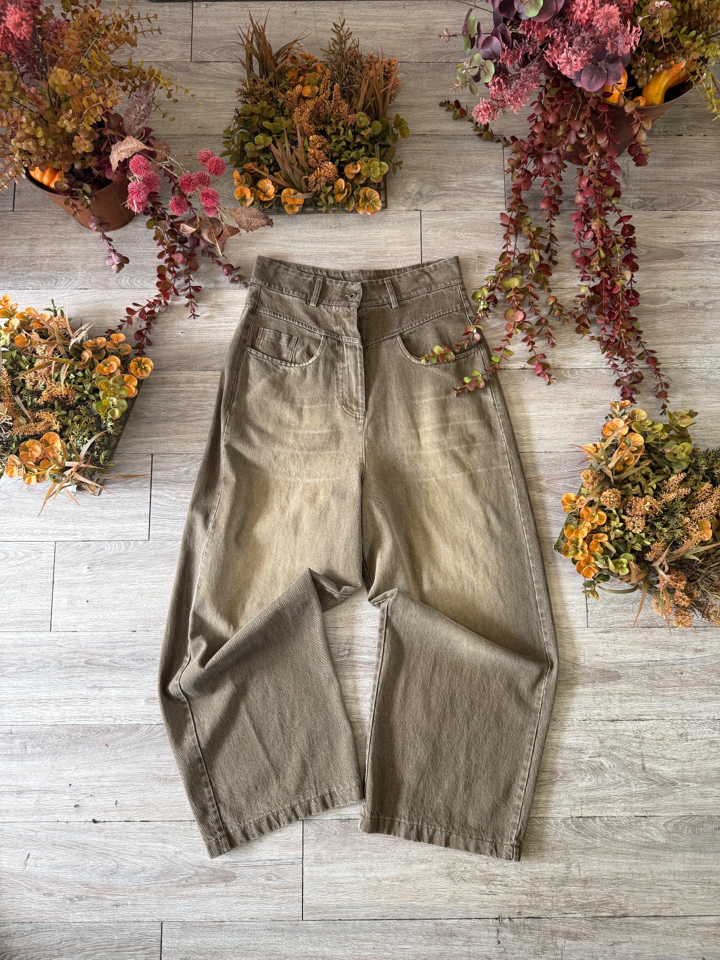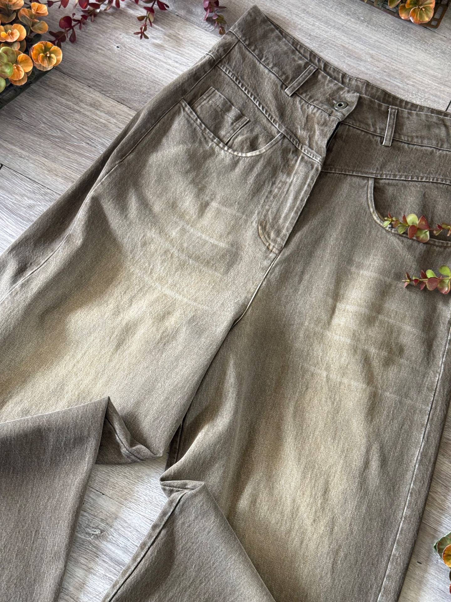 Pantalone a vita alta, taglio oversize, morbido in coscia e cavallo basso, in 100% cotone100% made in italy