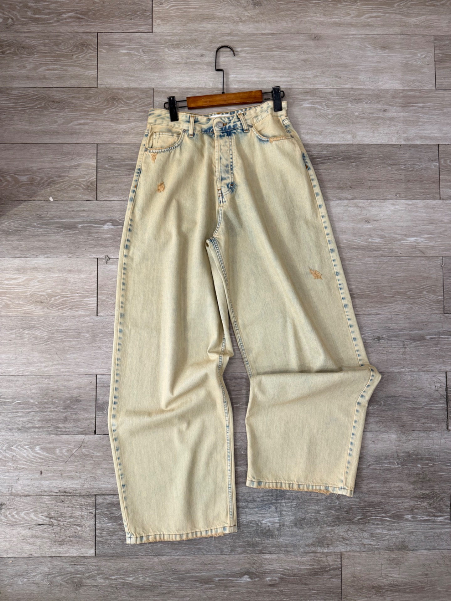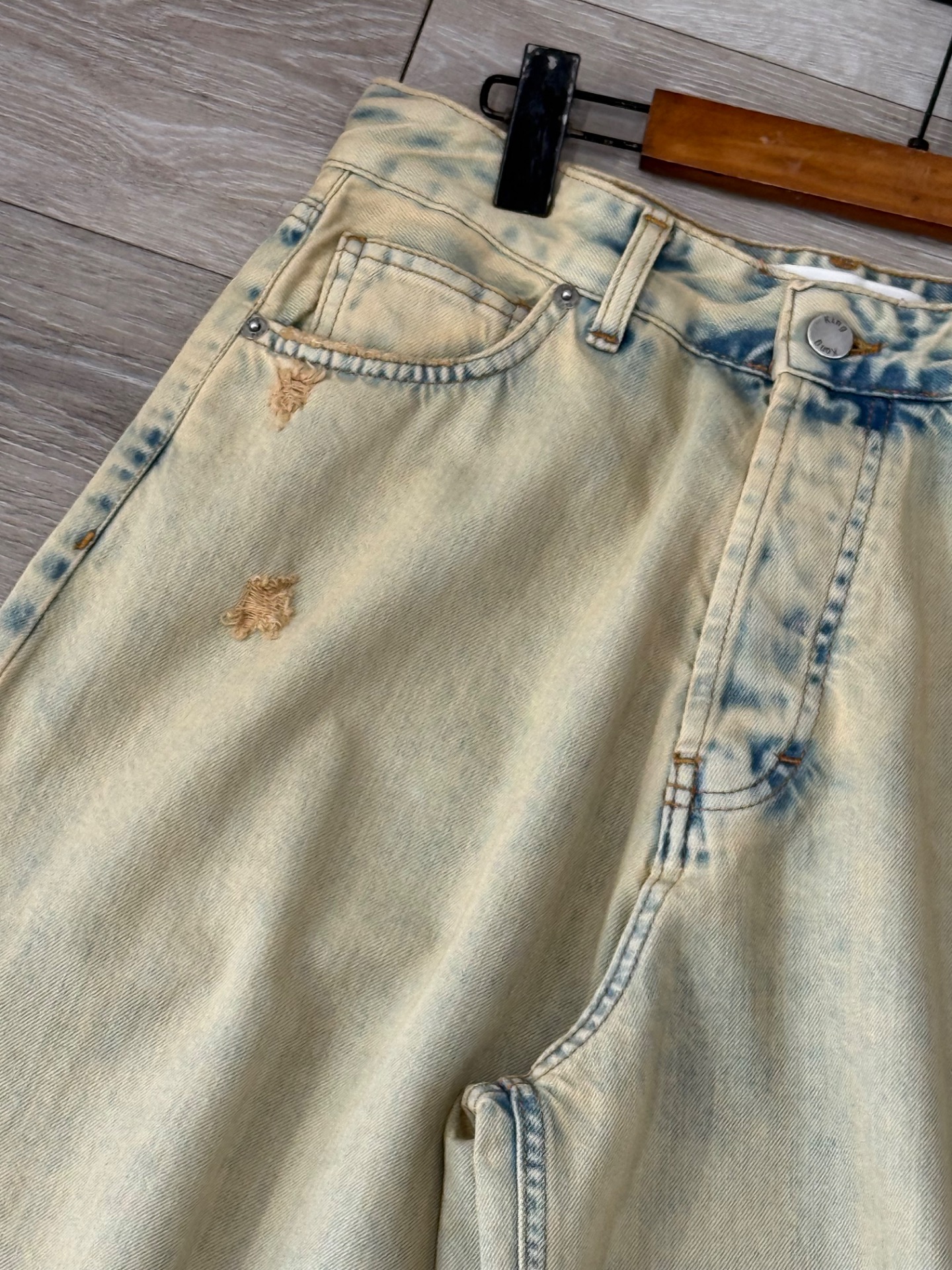 Jeans a gamba larga con dettagli e lavaggio slavato, vestibilita italiana