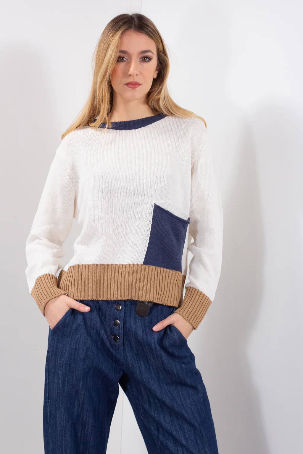 Maglia taglio quadrato con taschina