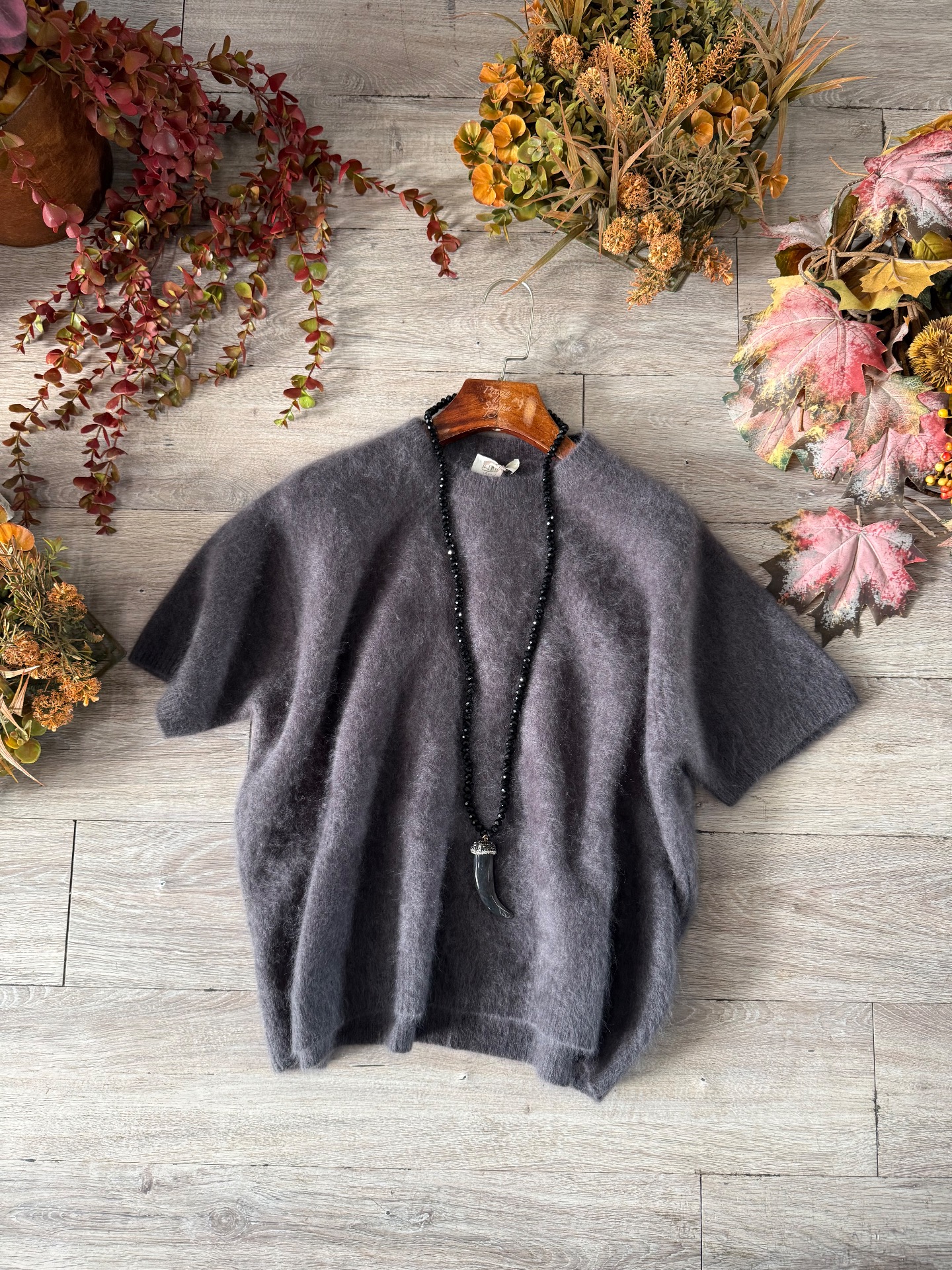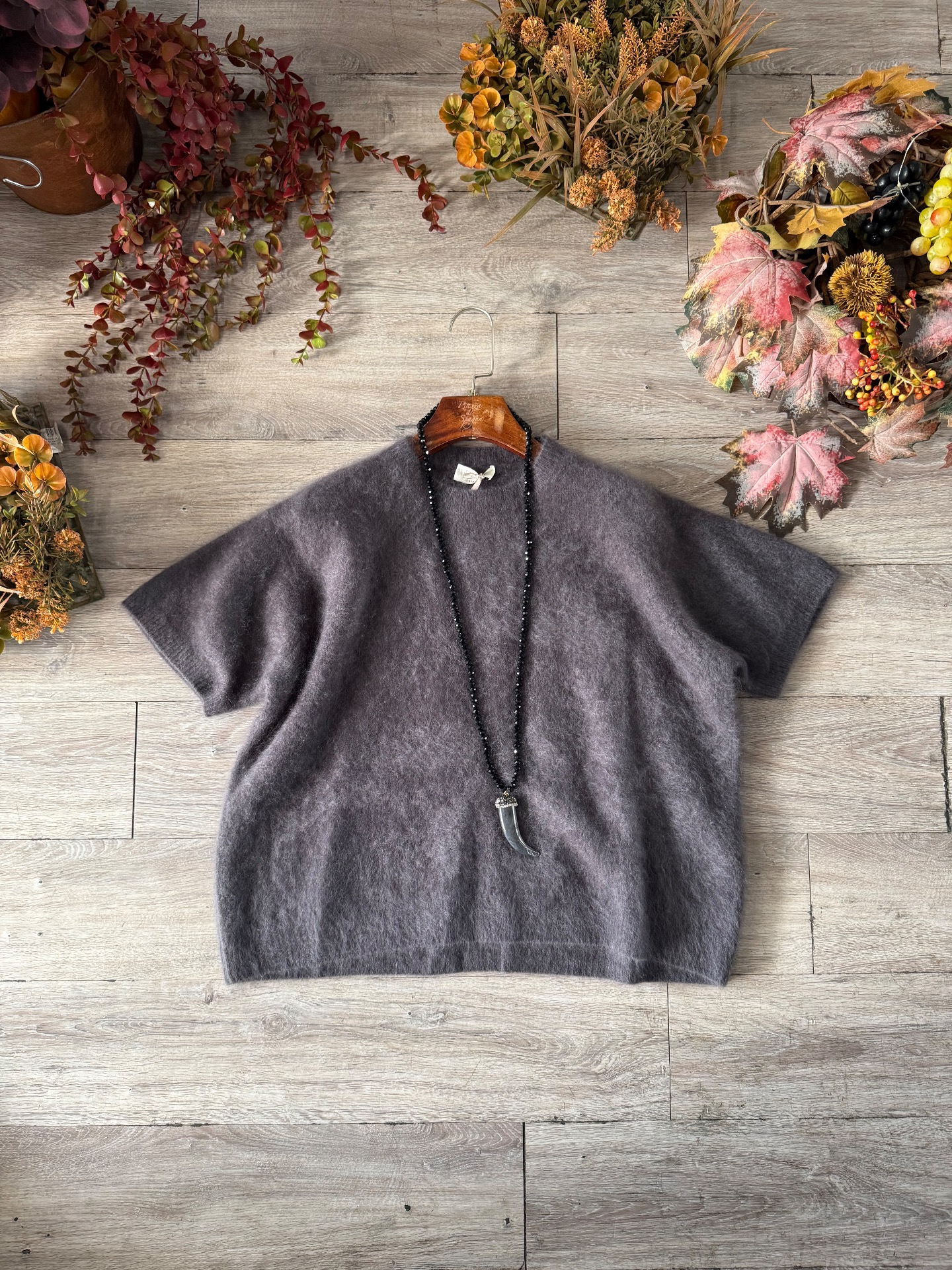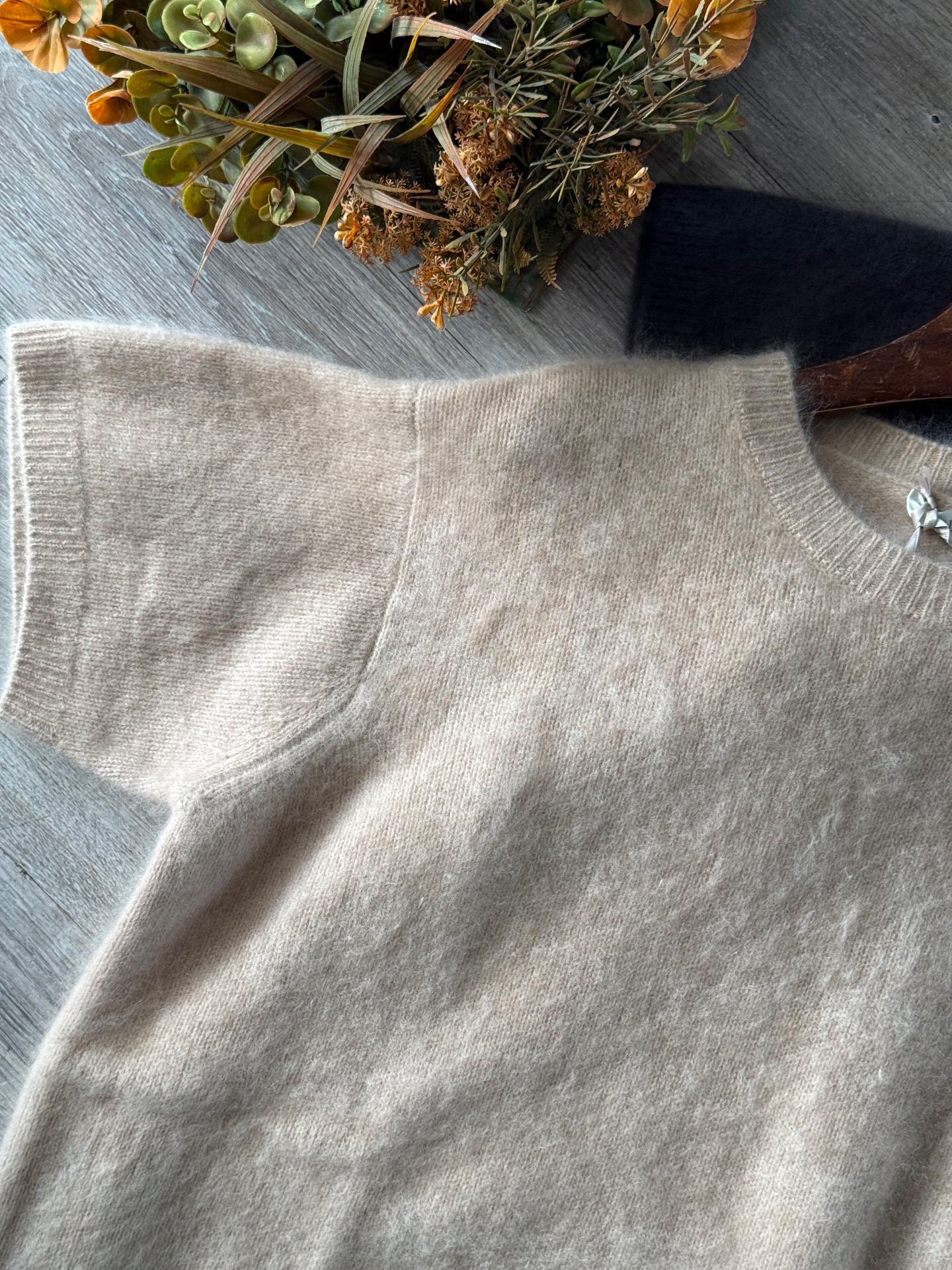 Maglia in lana elasticizzata, taglio quadrato, manica corta