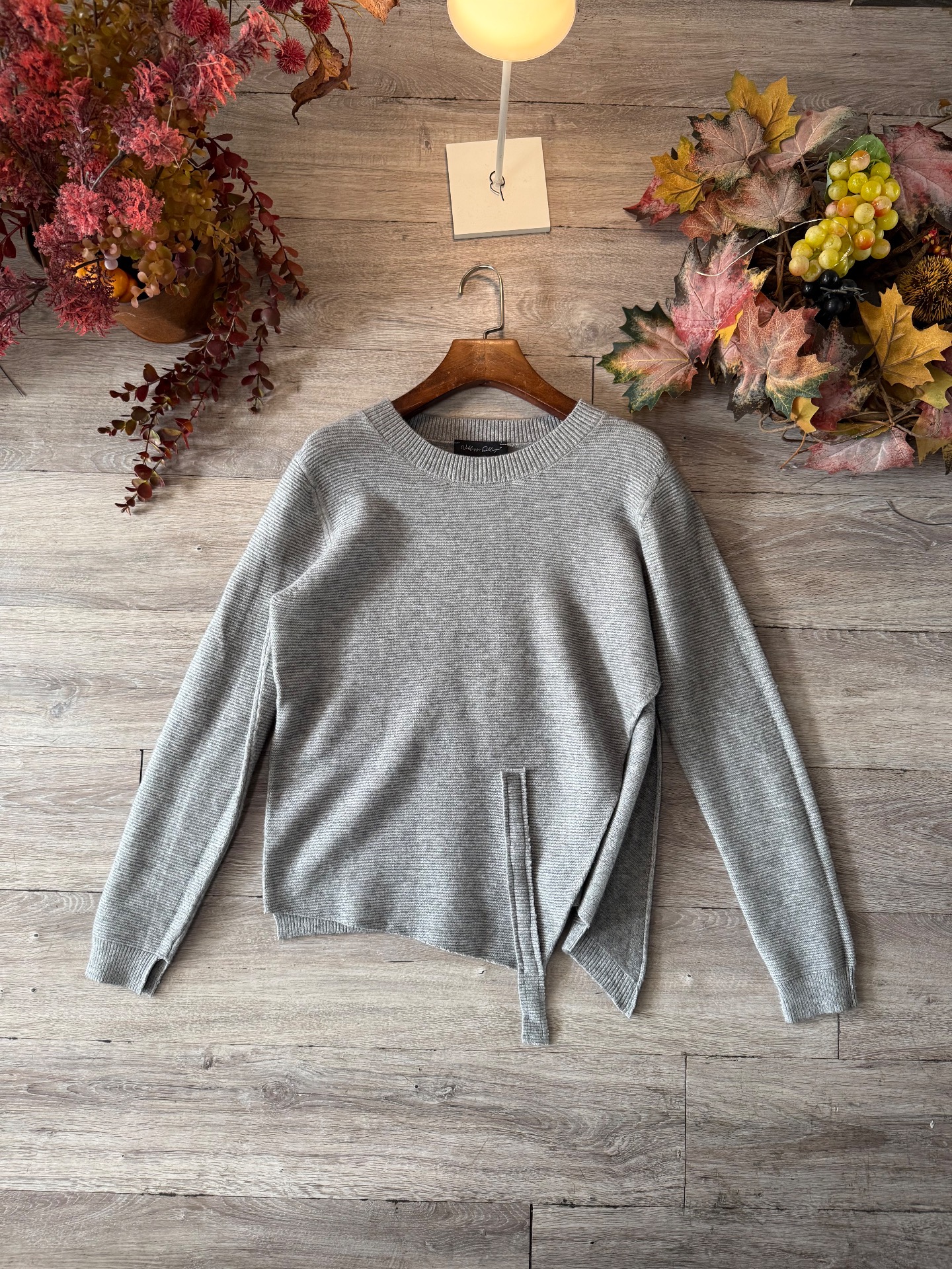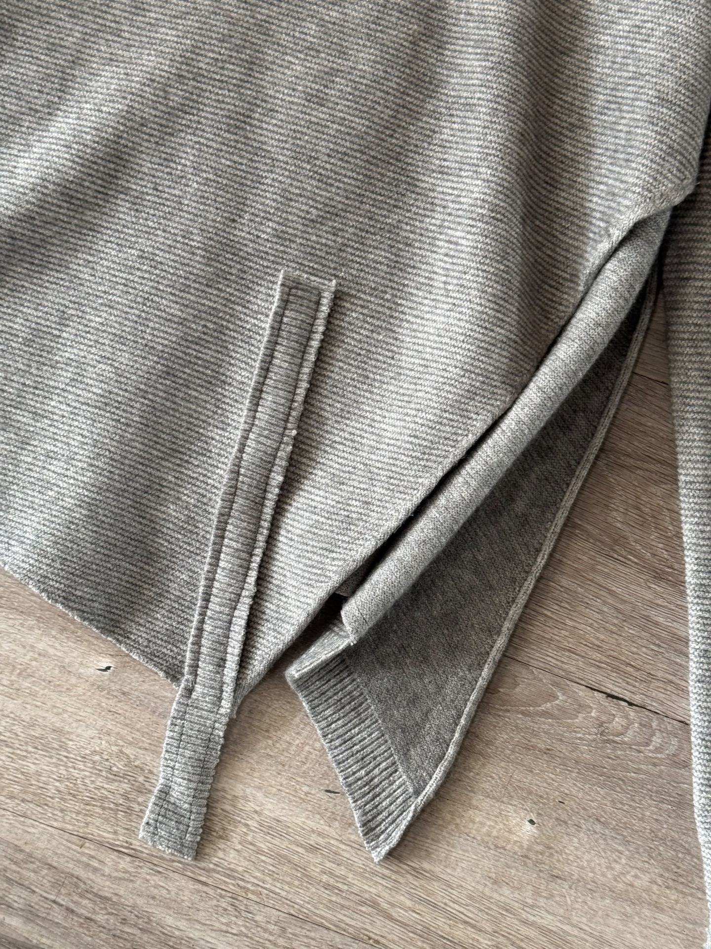 Maglia a giroccolo con patch, taglio asimettrico, fatta a mano