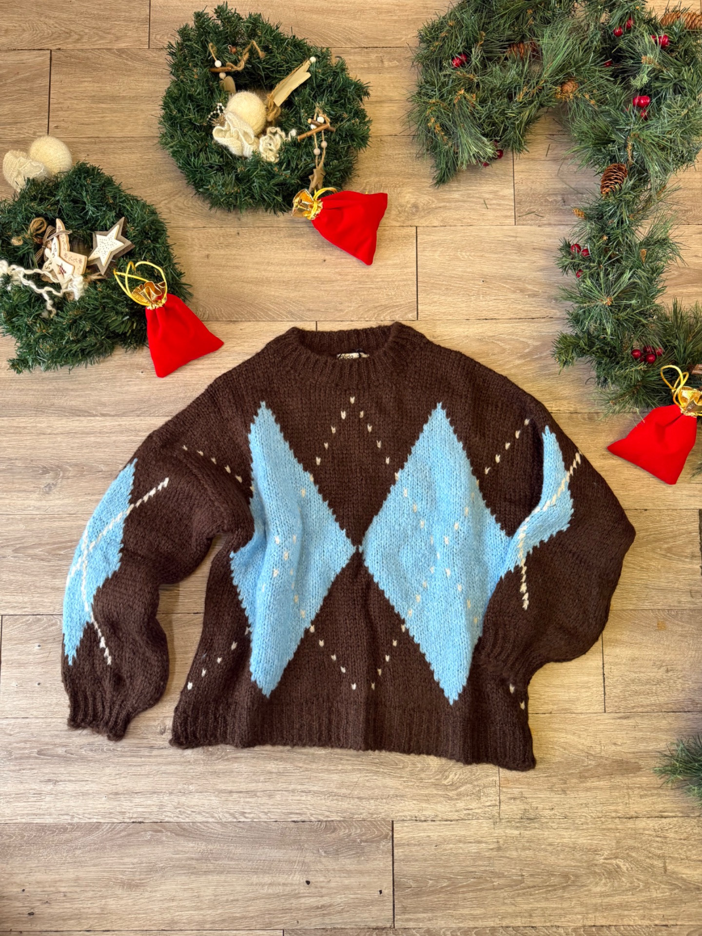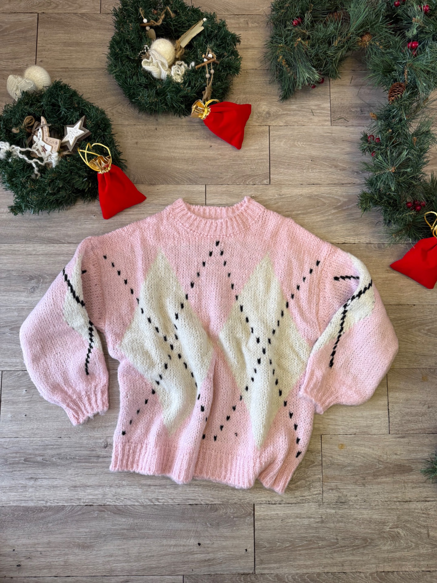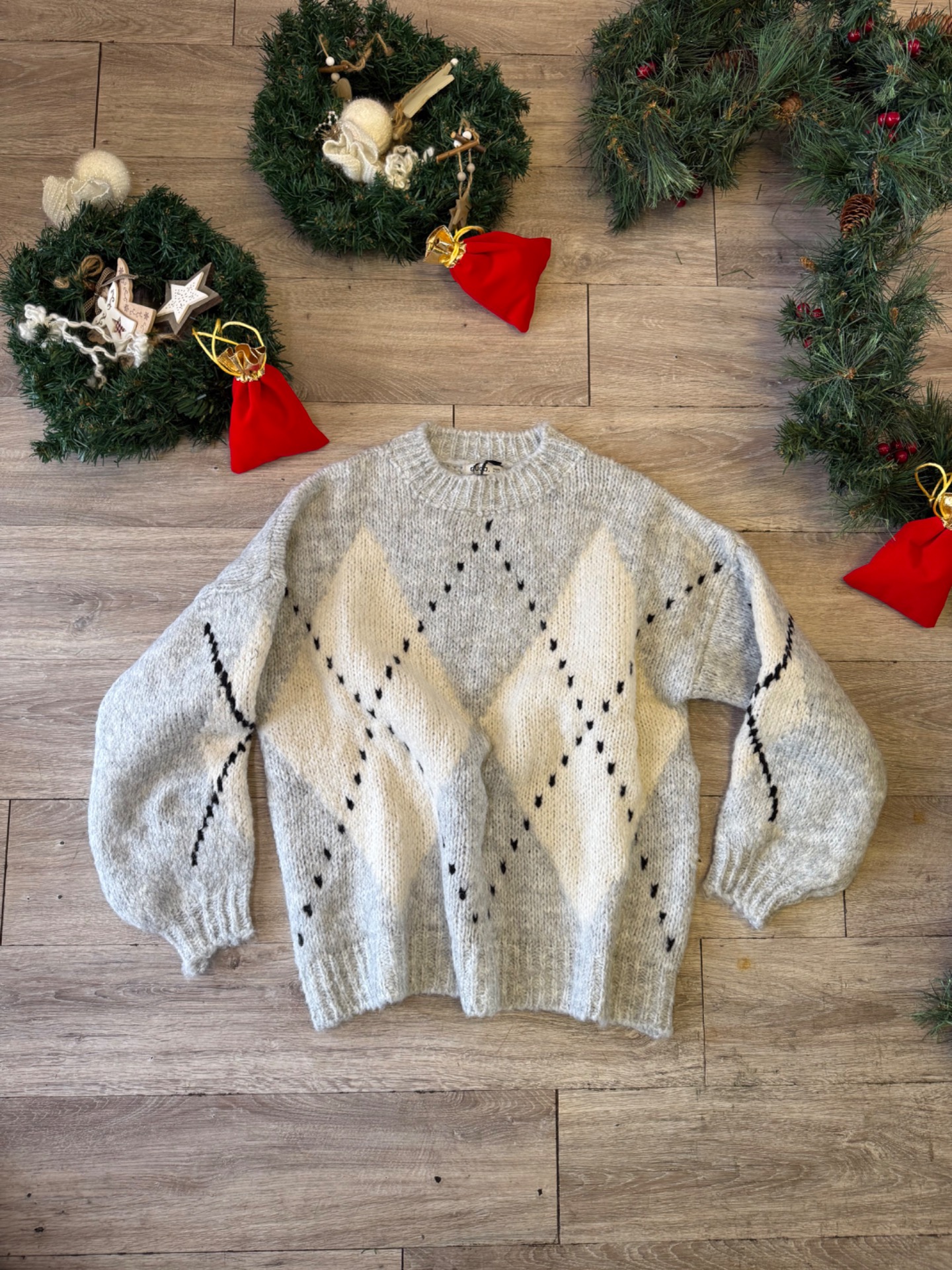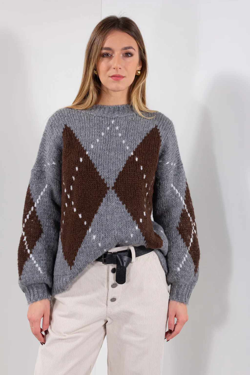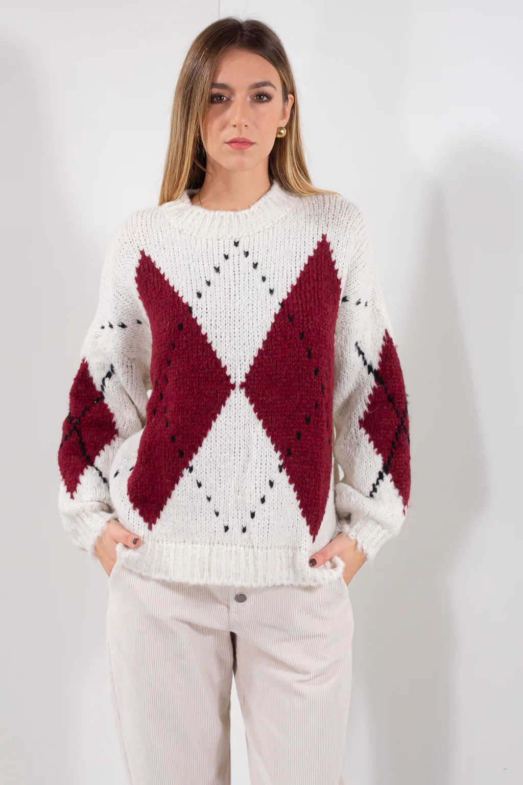 Maglione oversize con fantasia losanghe100% made in italy 9% lana 9% viscosa