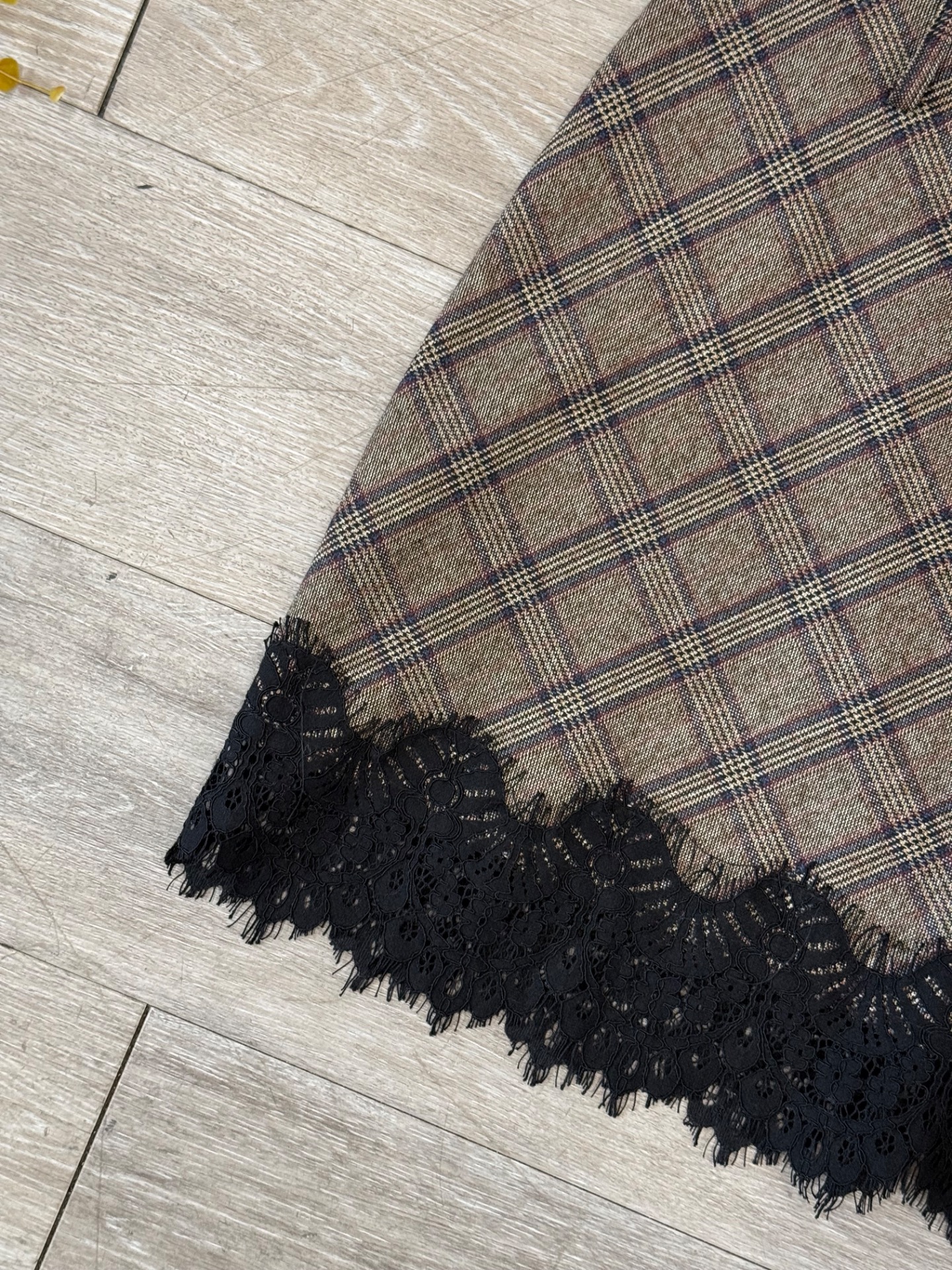 Minigonna con pizzo in fantasia, passanti e zip laterale