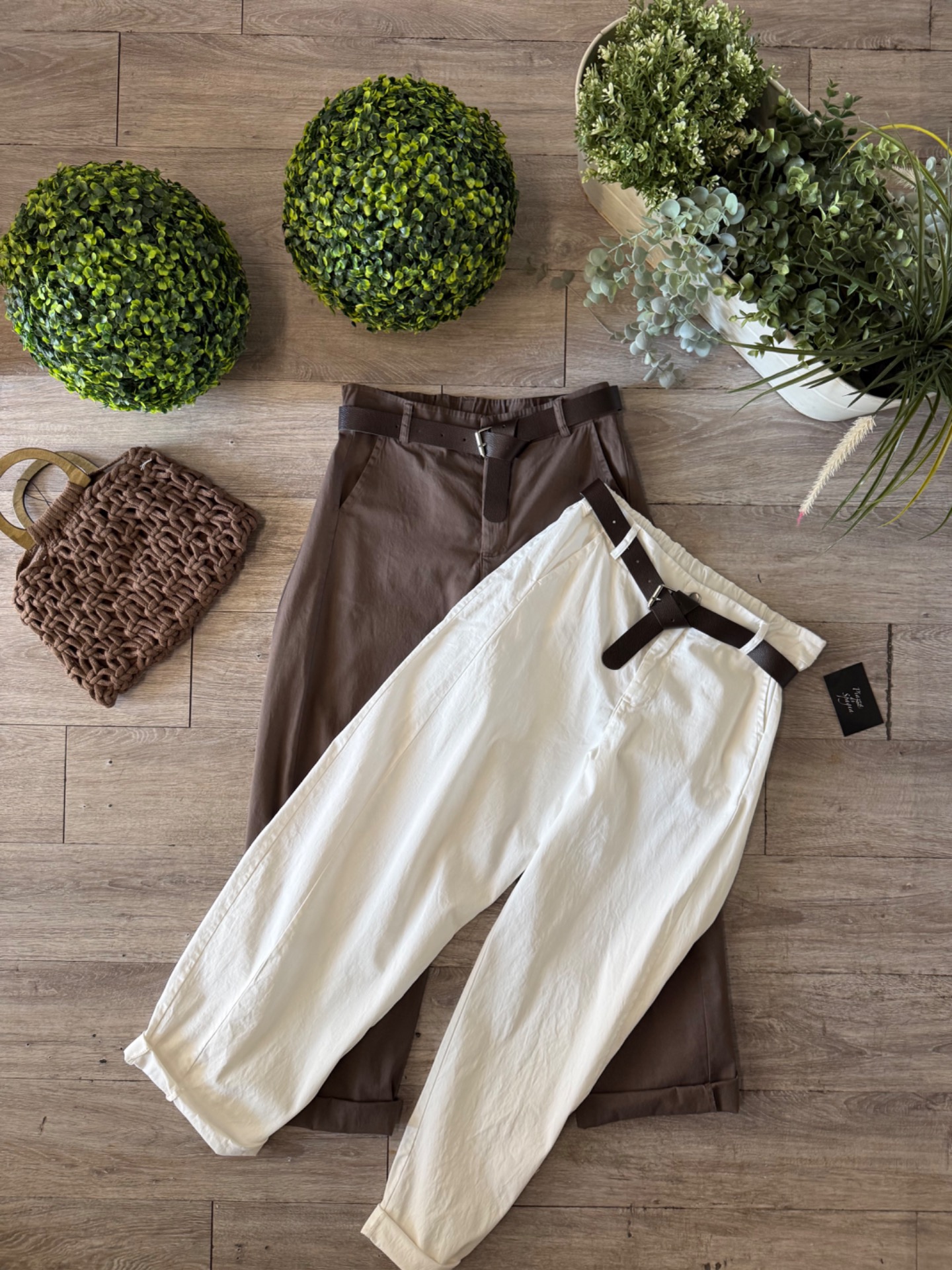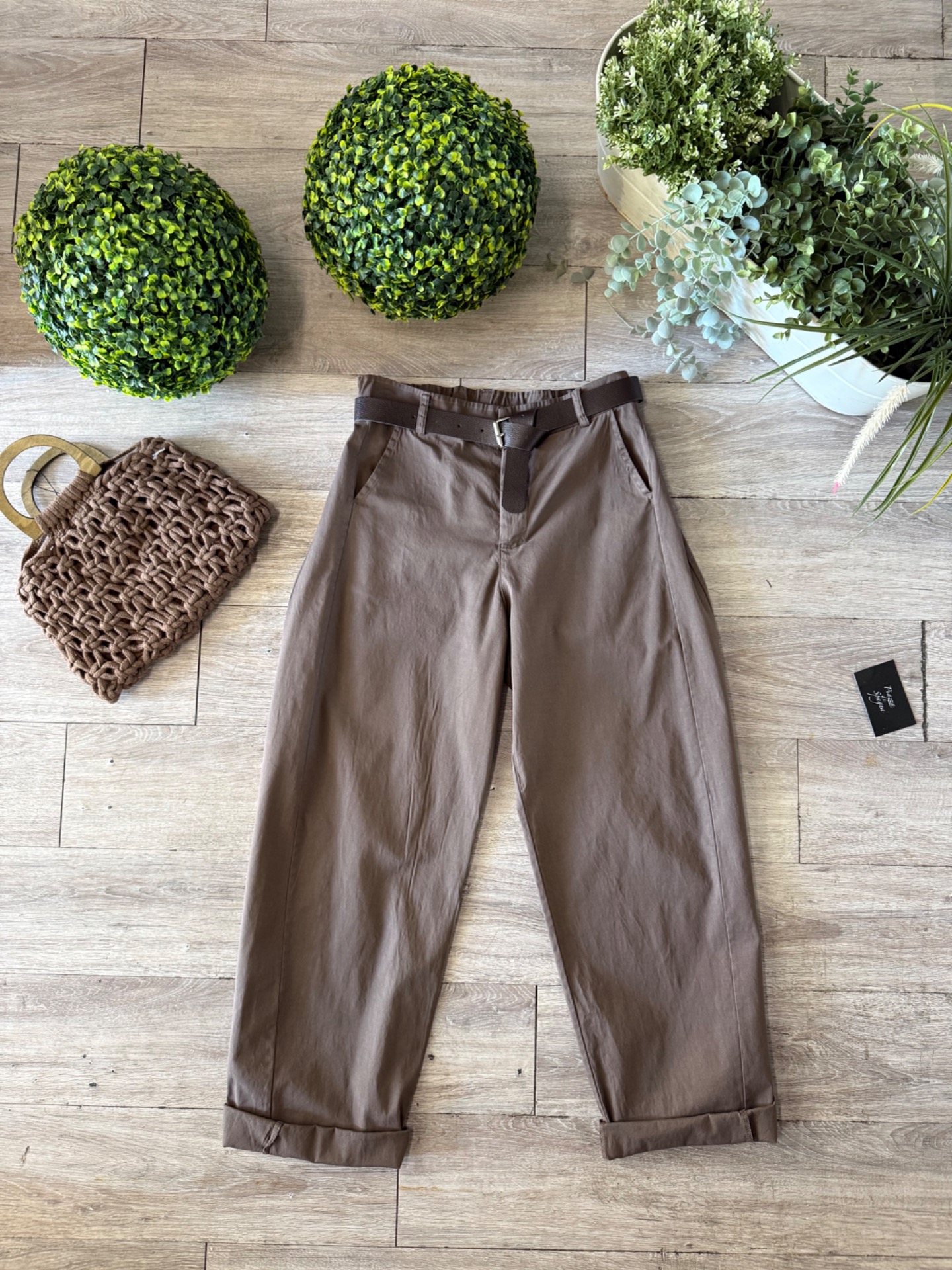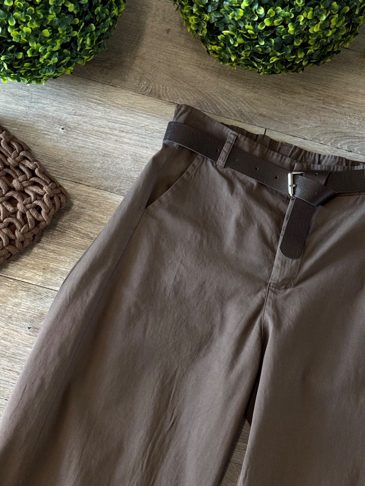 Pantalone con cintura e tasche, taglio alla caviglia