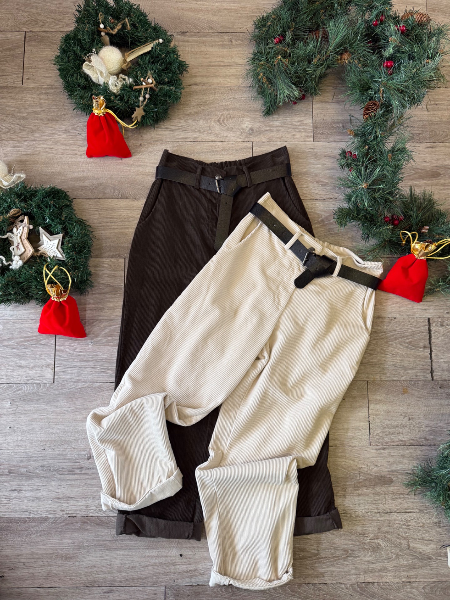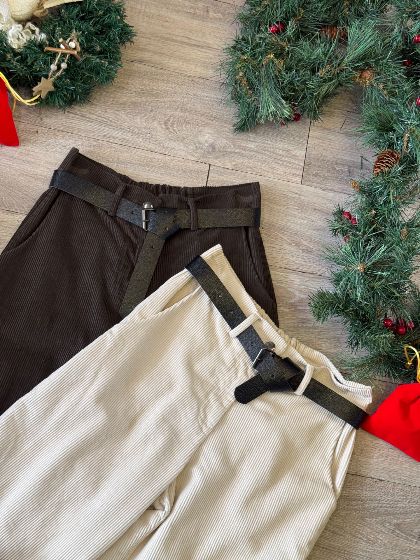 Pantalone in velluto taglio ovetto con cintura, taglio alla caviglia