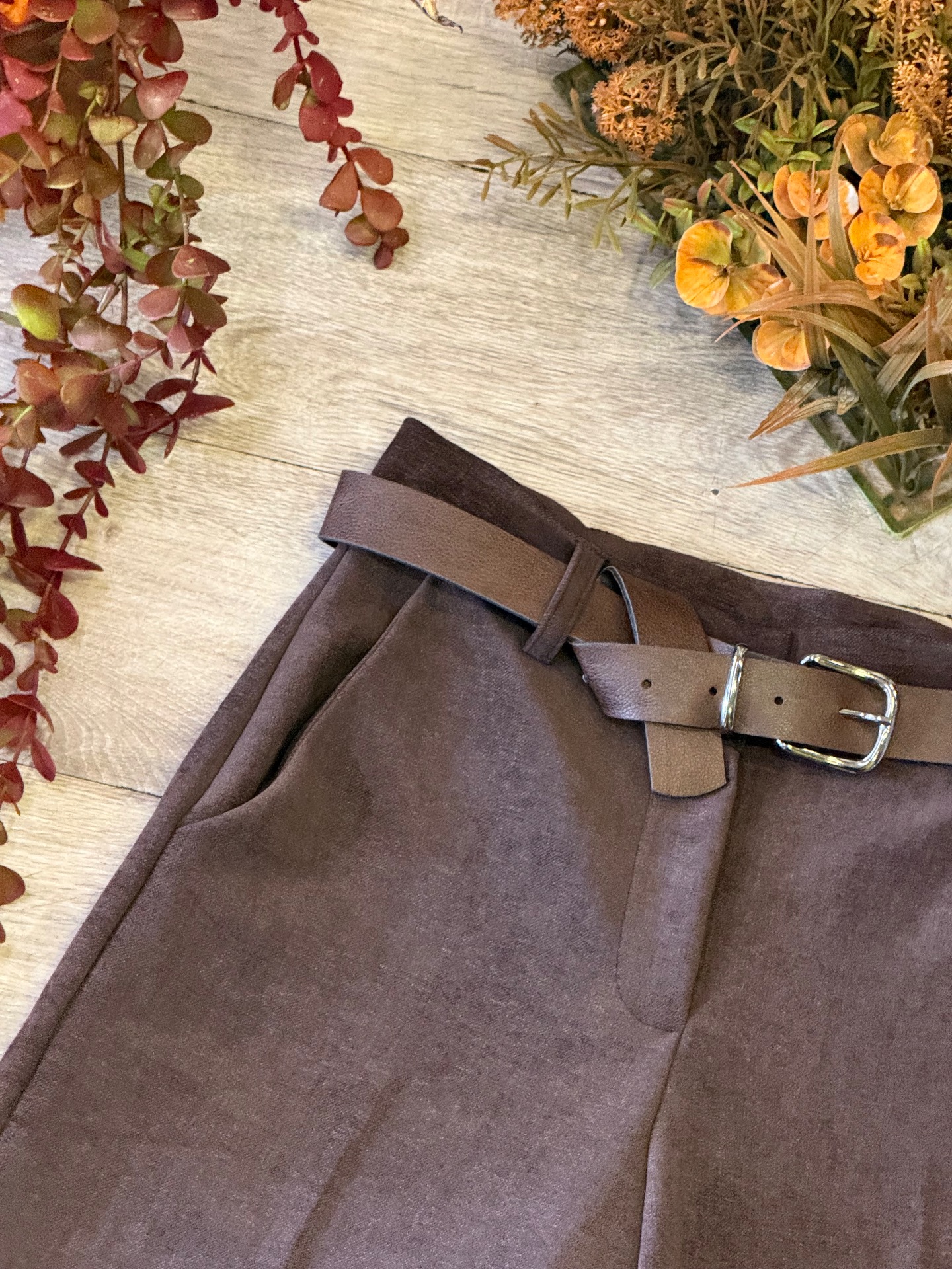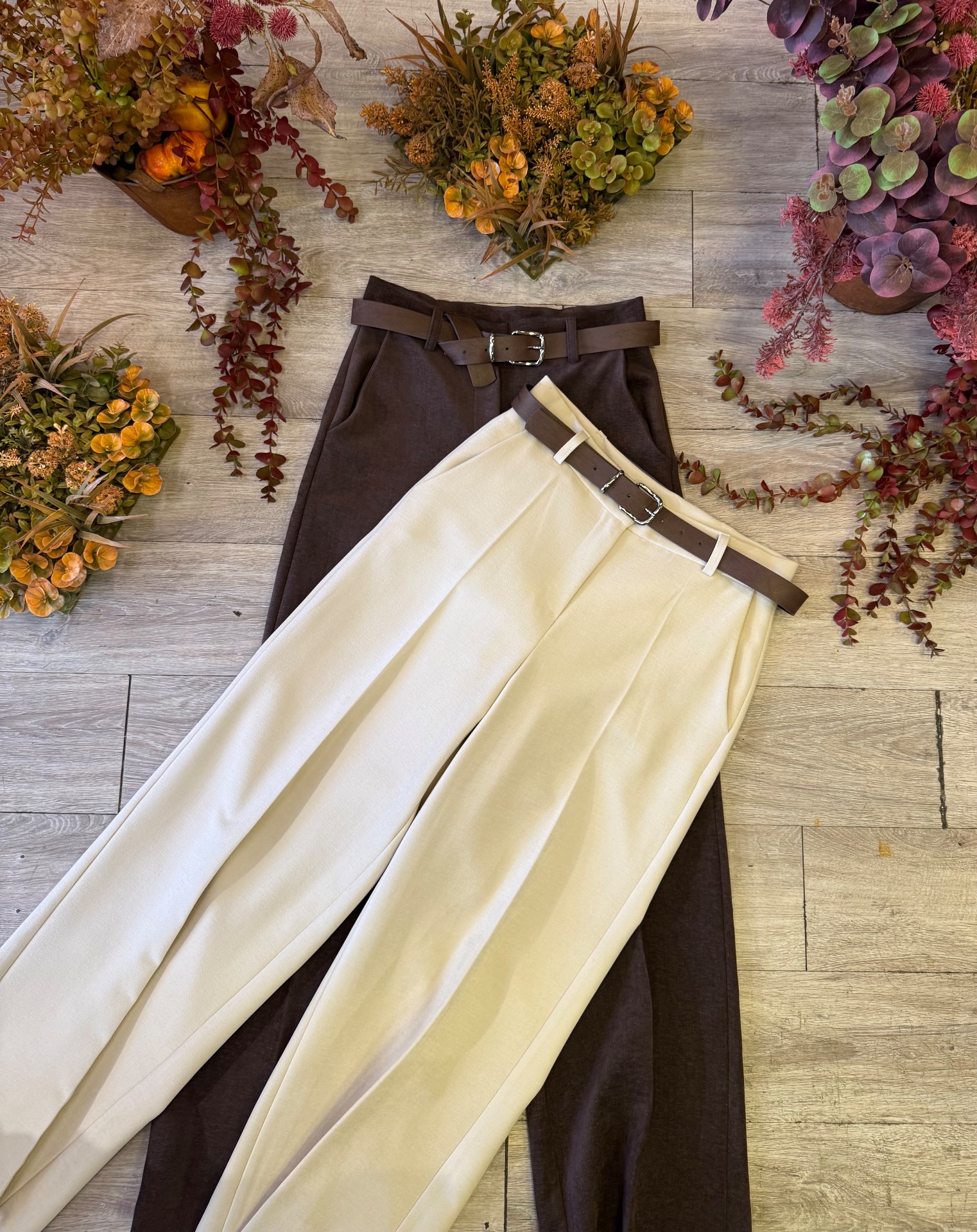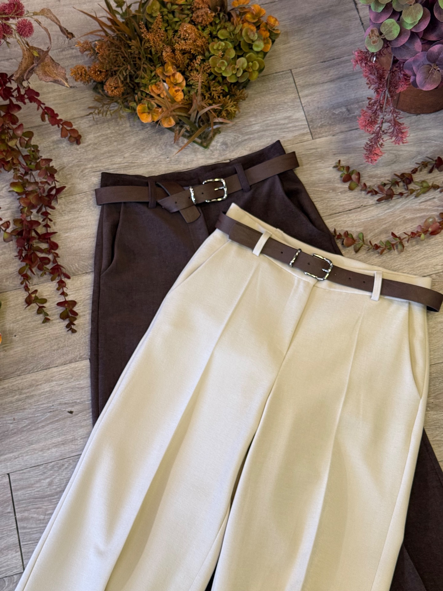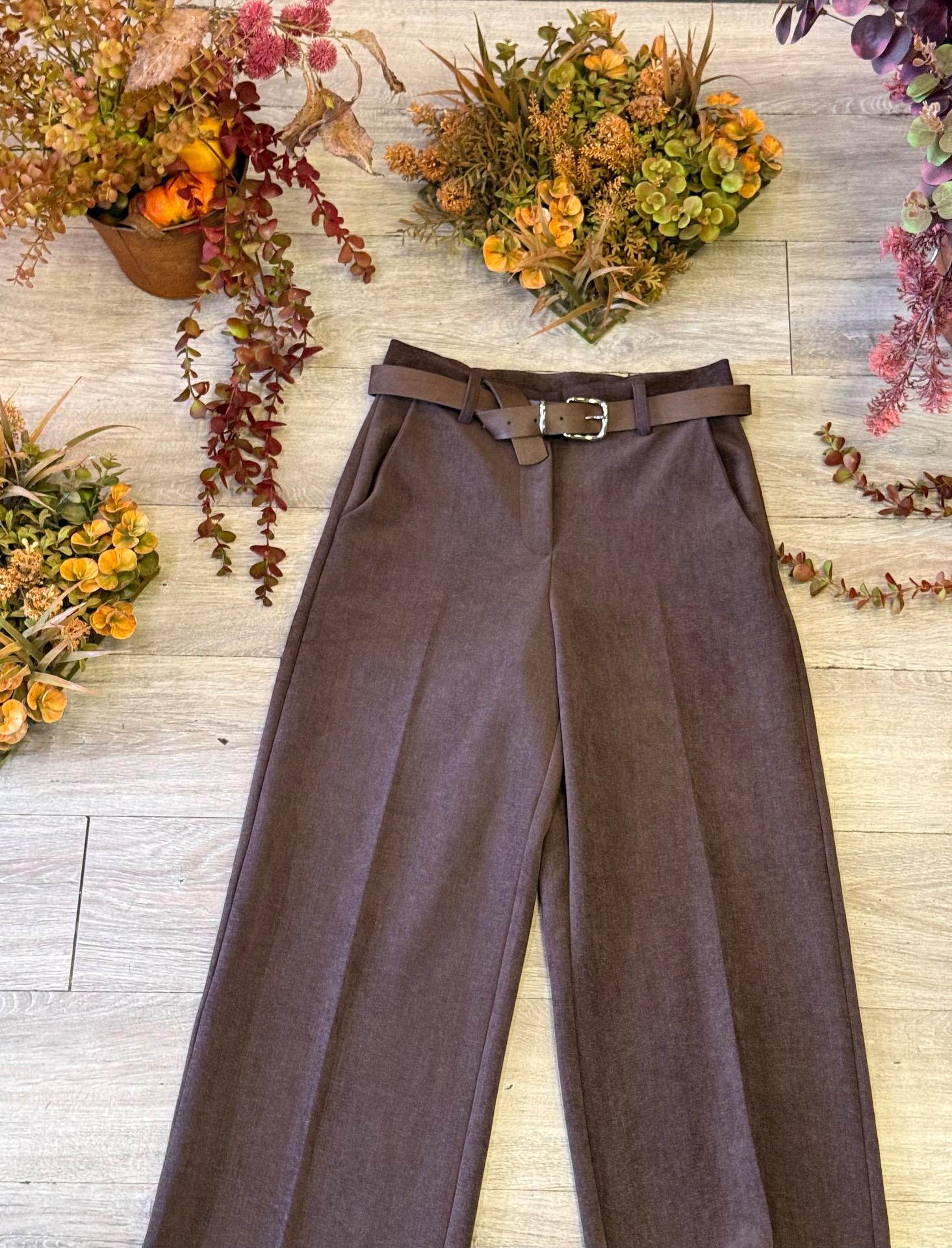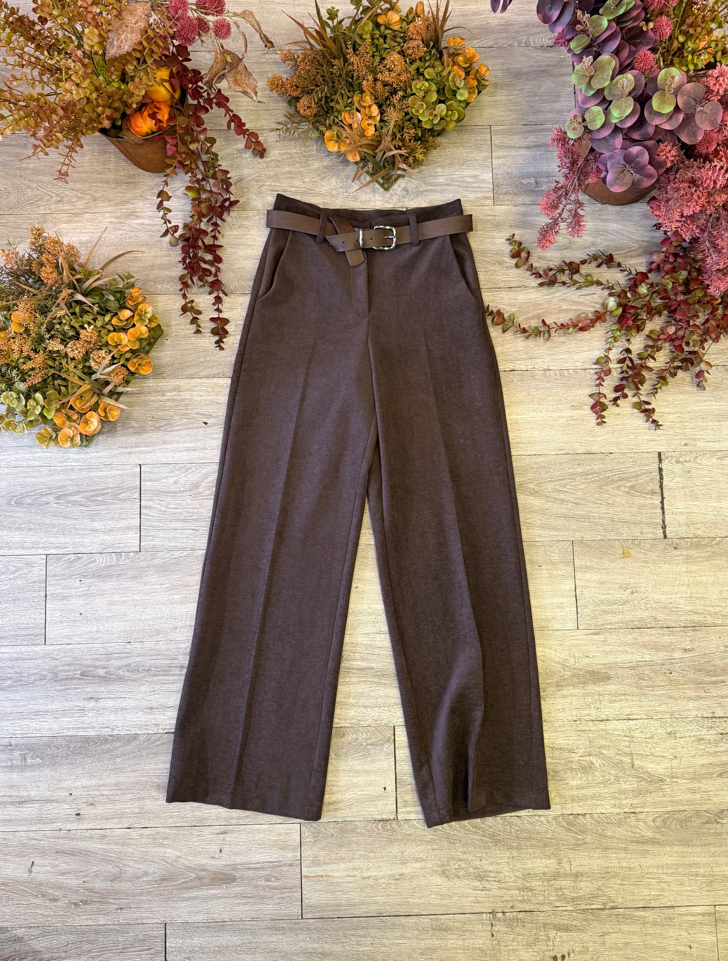 Pantalone palazzo invernale con cinturino, elasticizzato